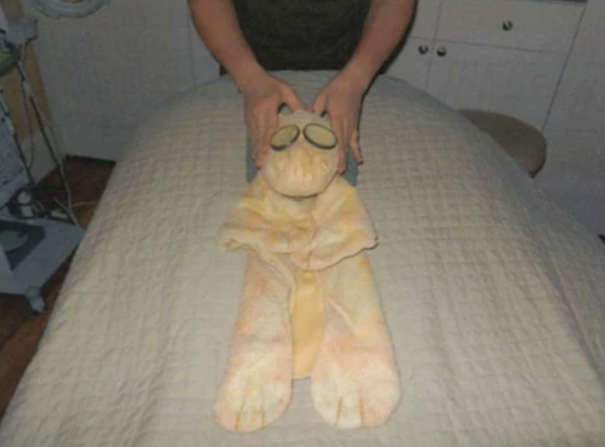 The staff had also included a photo album, meticulously documenting Joshie’s “extended stay” at the resort. There were photos of him lounging by the pool, getting a massage, working in hotel security, even wearing a tiny staff badge.